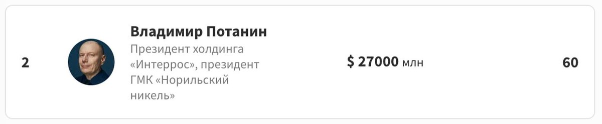 14/28 Oligarch Potanin praises Putin publicly. He brags that sanctions do not matter to him. That western politicians do not know what inconvenience and discomfort are, but he, for Putin's sake, will endure anything. Number 2 on the Forbes list. Still not sanctioned.