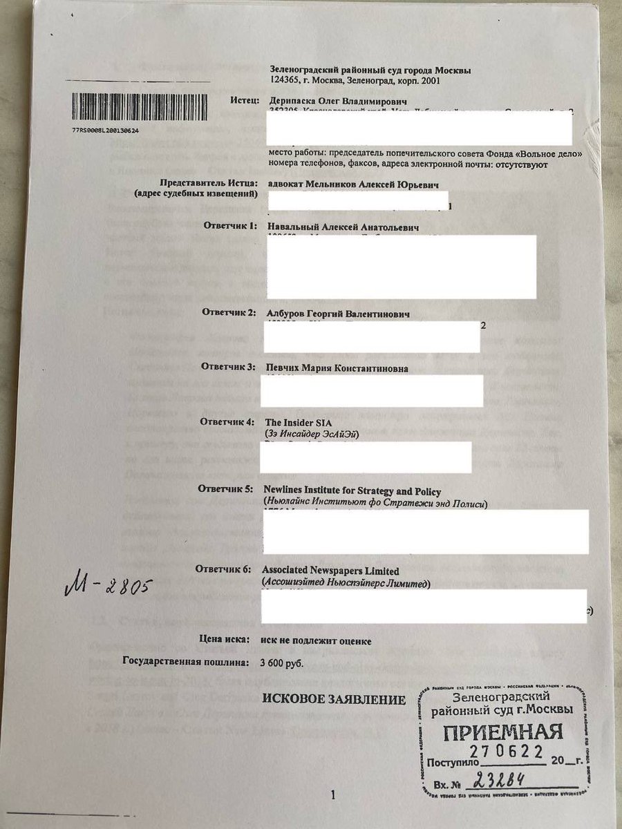 1/6 Just as I got out of the SHU, they gave me a notice: oligarch Deripaska is suing you.