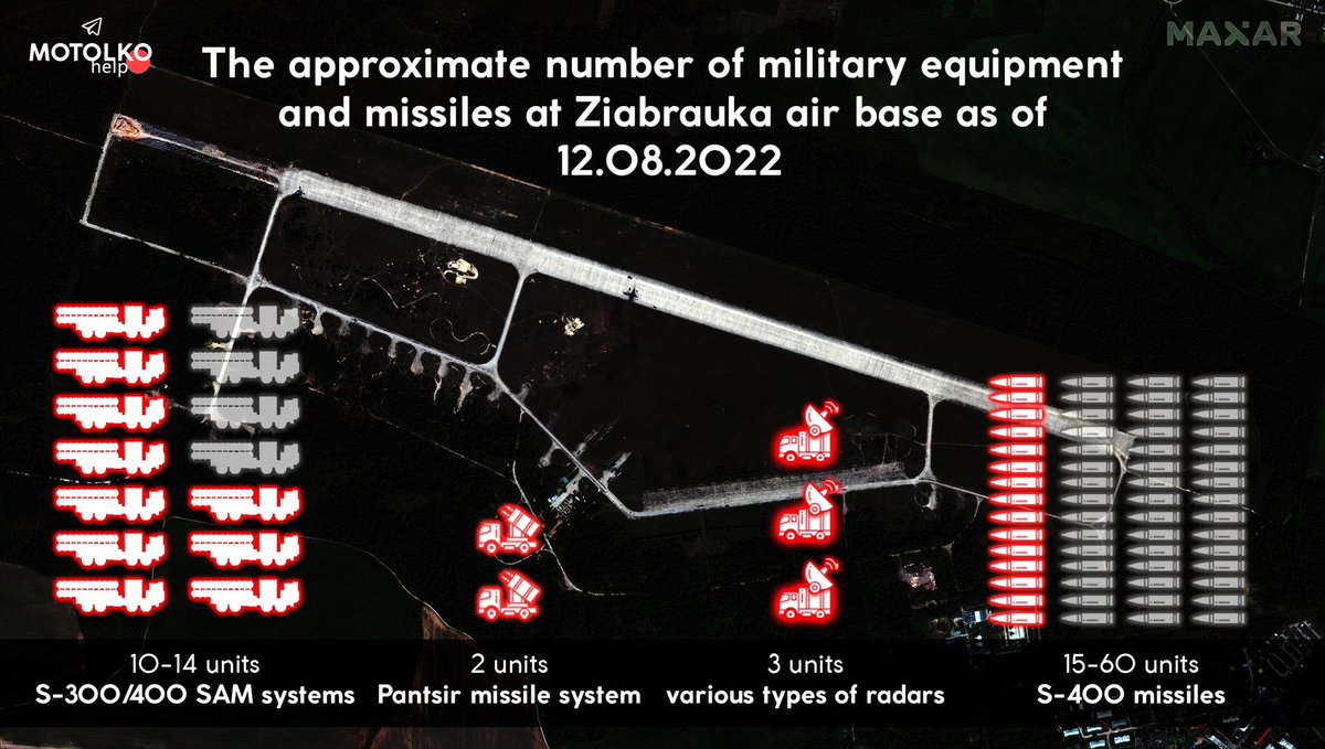 ❗️Up to 14 S-300/400 SAM systems, Pantsir missile system and radars – a fresh report on the amount and types of military equipment at Ziabrauka airfield by the Belarusian Hajun Project: