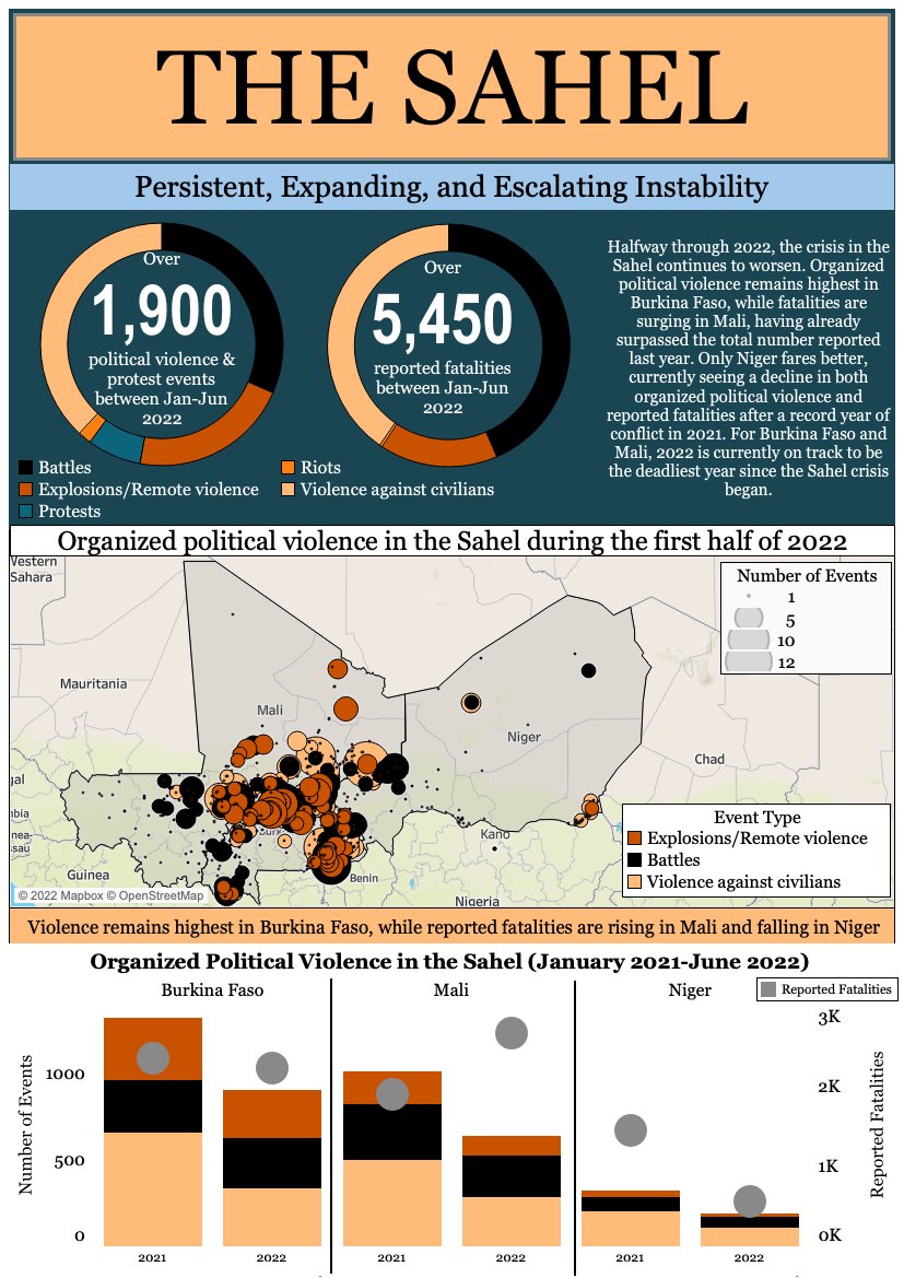 Conflict has only continued to worsen in the #Sahel in 2022, which is currently on track to be the deadliest year for Burkina Faso and Mali since the crisis began more than a decade ago.