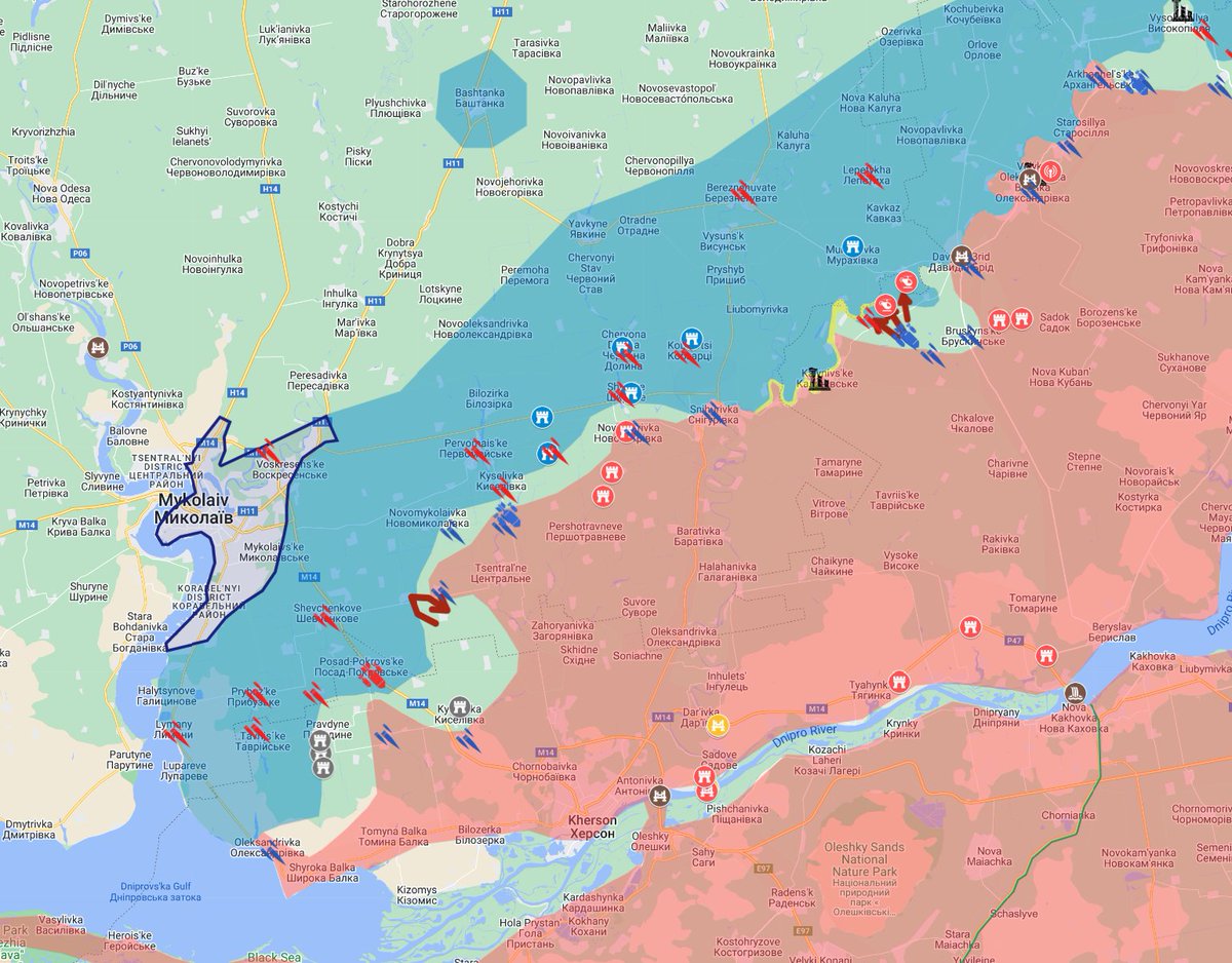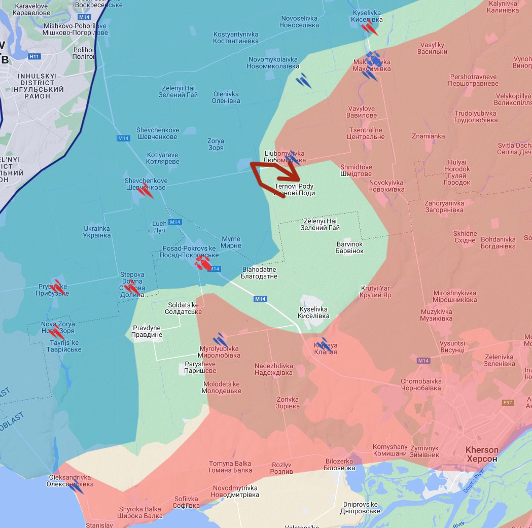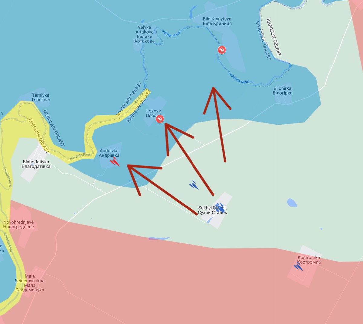 Russia attacked the entire Ukrainian bridgehead across the Inhulets River. I am unsure of the results of this attack.