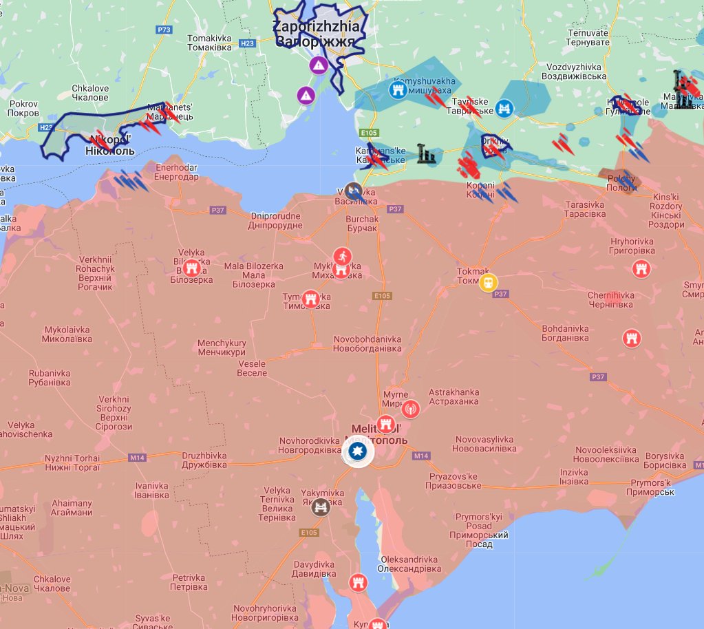 In Melitopol, there were multiple explosions in the power substation, and then Russian propaganda television channels went off the air.