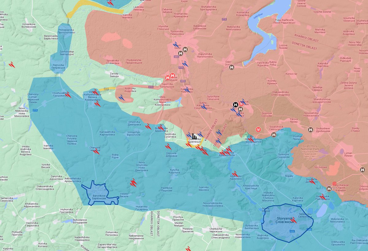 I created significantly more gray area around Dovhenke, Mazanivka, Krasnopillya, and Dolyna. I'm not really sure what is going on there, but there hasn't been much news lately.