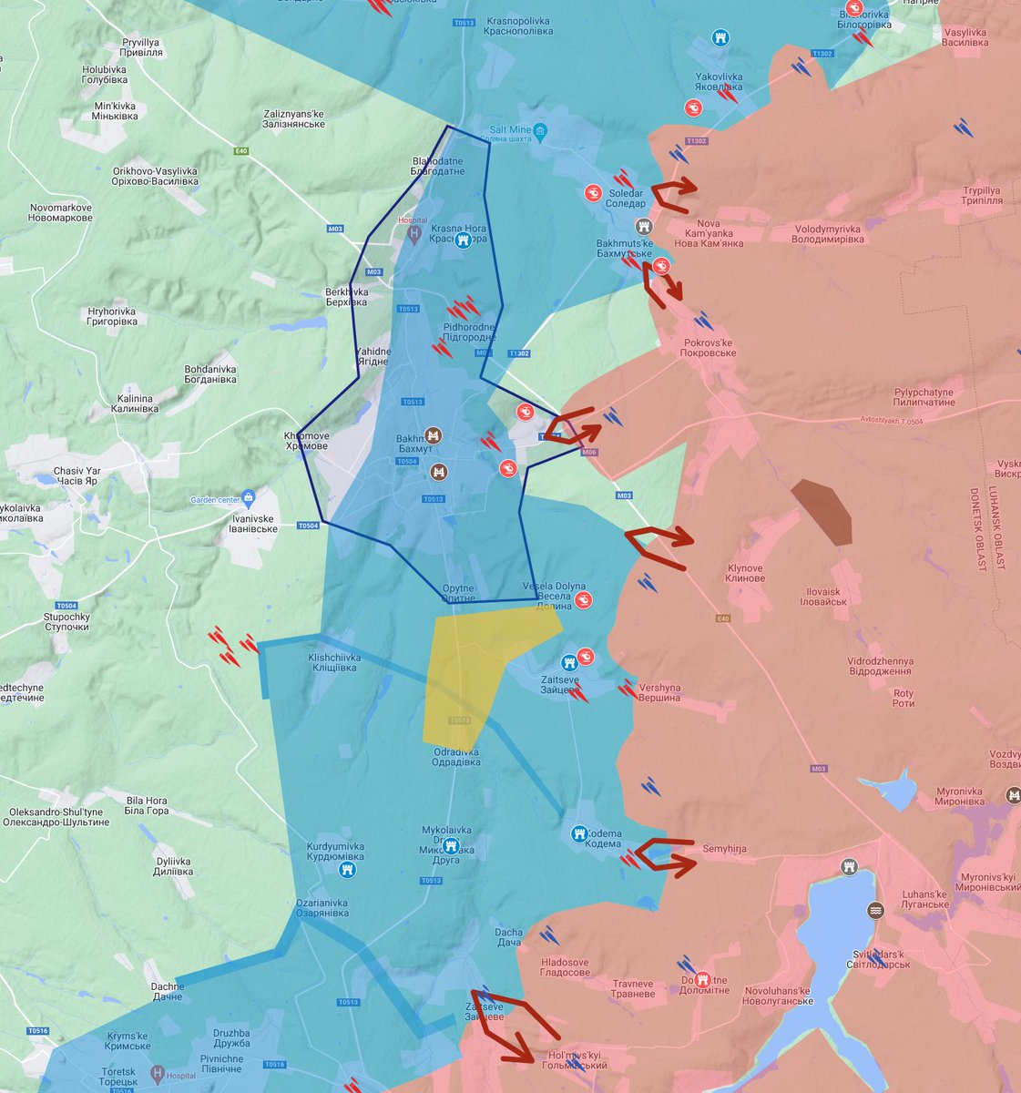 Russia attacked Novohryhorivka from the southeast, which made me reevaluate the Ukrainian positions southeast of the town. Russia suffered high casualties in this attack and retreated.