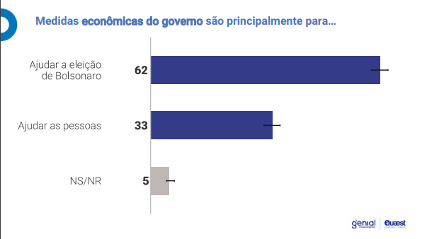Talvez isso seja explicado pelo fato de maioria dos eleitores enxergarem as medidas como eleitoreiras, vejam como os que acham que Bolsonaro quer ajudar são quase metade dos que acham o contrário.