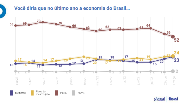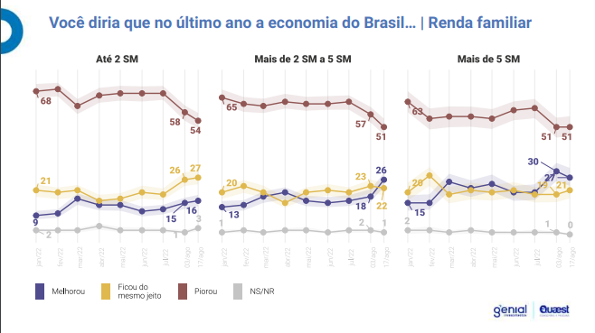 Entre os eleitores de menor renda essa percepção de piora vem caindo, porém a de melhora não sobe no mesmo ritmo.