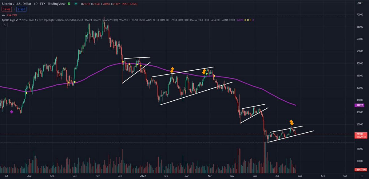 3/ This bear flag is significantly bigger. We have been consolidating for 60days and the range is getting tighter. The longer the consolidation the bigger the breakout.