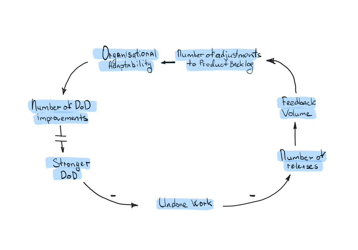 Letβs follow the system diagram to see the connection between Velocity, DoD strength and Agility.