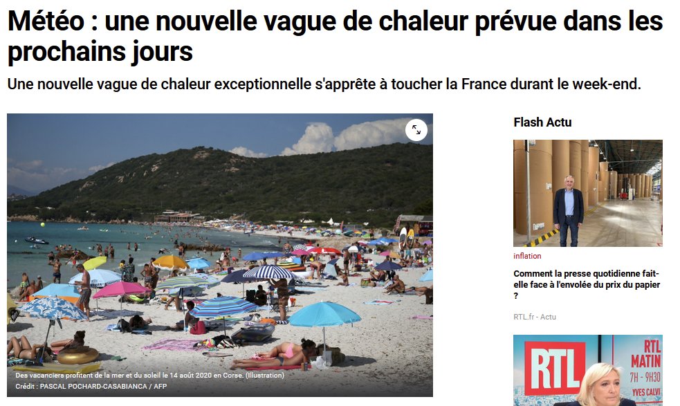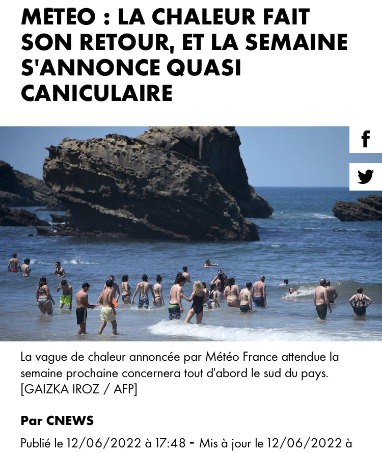 À peine les premiers signes d'une brutale vague de chaleur qui va mettre à rude épreuve nos organismes, notre agriculture et l'ensemble de la biodiversité, que certains médias brandissent déjà des images de vacanciers ravis d'être à la plage. Un fil ⤵️