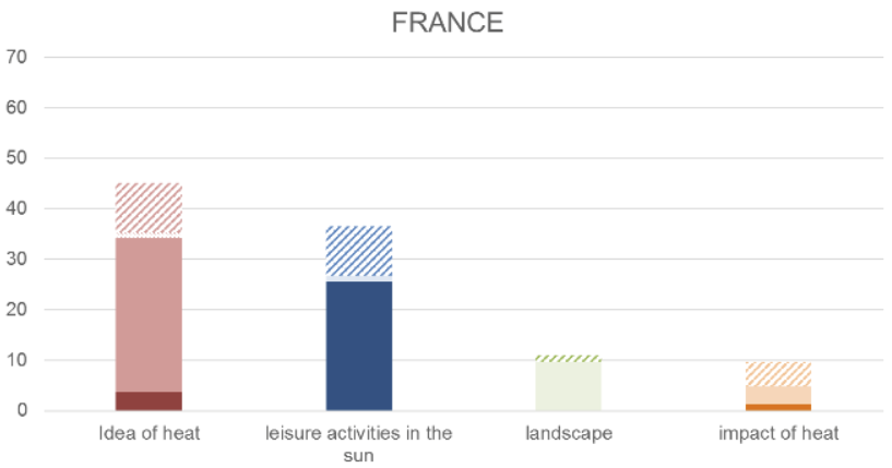Une toute récente étude en prépublication révèle qu'en 2019 en France, le tiers des sujets consacrés aux vagues de chaleur avaient été illustrés avec des activités de loisir au soleil.