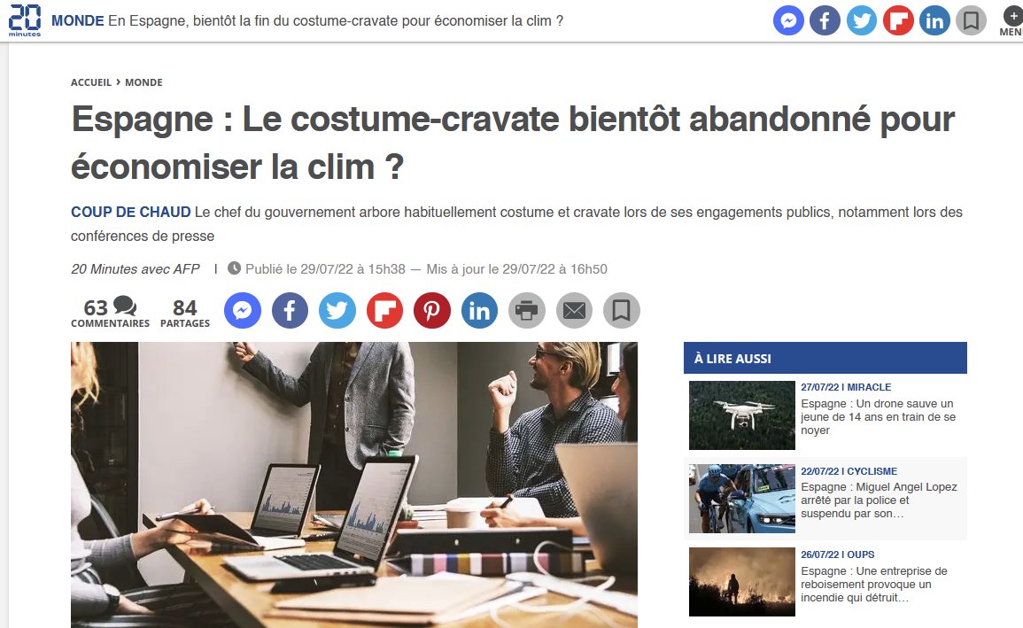 3) L’obligation de porter des costards en toutes saisons (même quand il fait 40 degrés). En Espagne ils ont déjà tombé la veste et c’est pas plus mal.