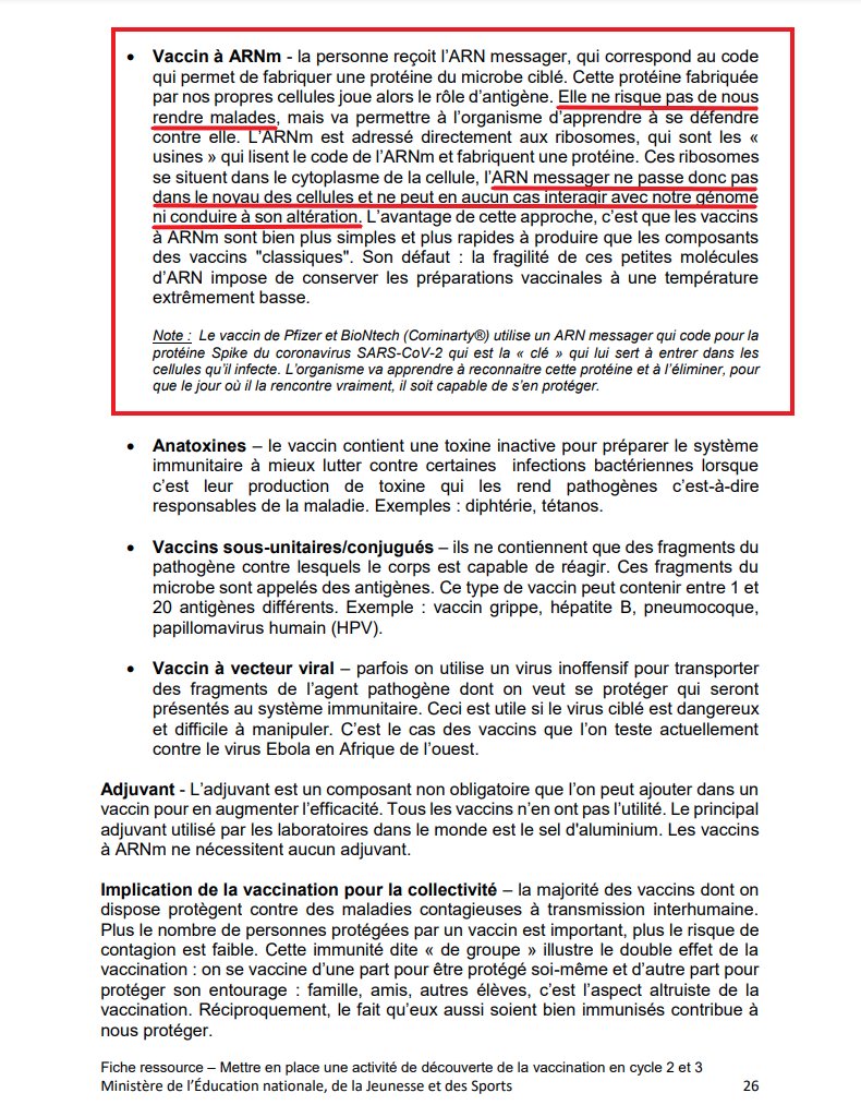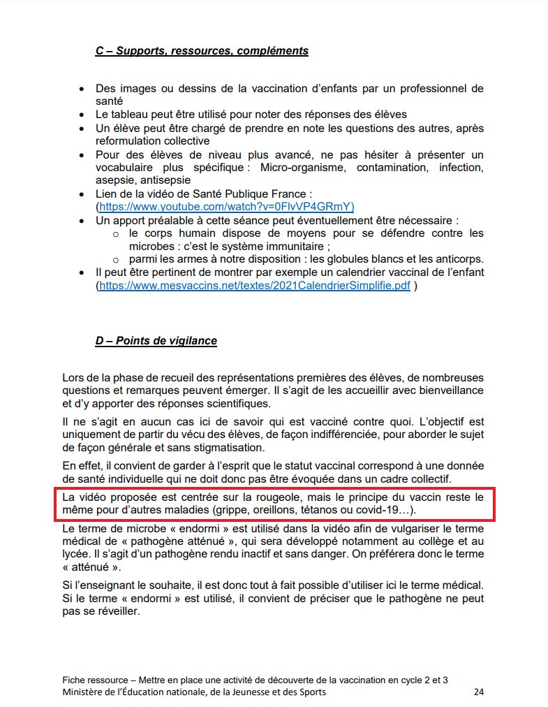 2/n Ce document à l'intention des enseignants du primaire (du CP au CM2) commence bien mal. Dès le chapitre 1, au lieu d'évoquer (exemple), l'histoire des vaccins, il n'est question que de la vaccination contre la #COVID19. Le ton est donné..
