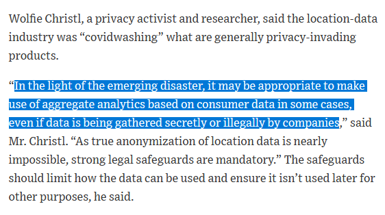 Yep, in March 2020 even I said ok perhaps we could use data gathered secretly or illegally in the public interest. But this was a *long* time ago, and I've neither seen safeguards in the US nor GDPR enforcement in Europe.