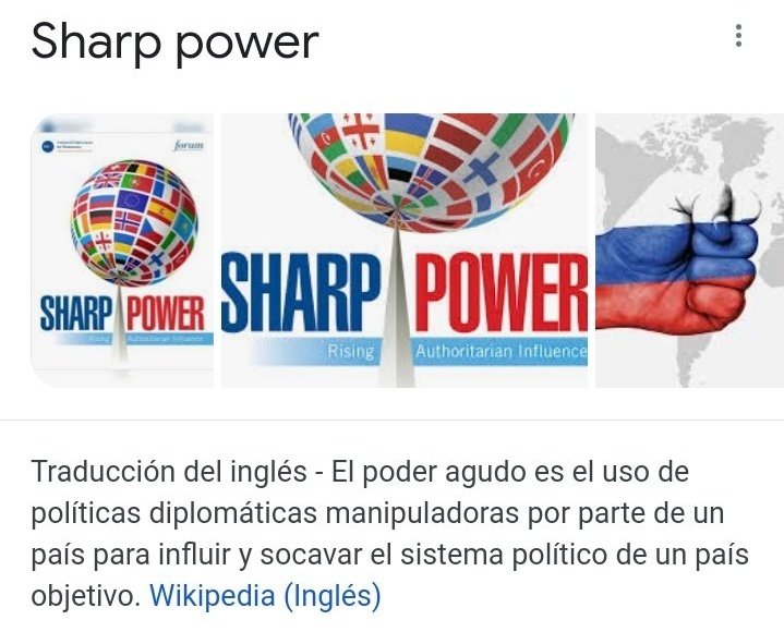 Conjugando un planeta vírico junto a influence-influenza (gripe) y "sharp power"(poder agudo) una especie de acrónimo cuyo significado es la subversión extranjera.