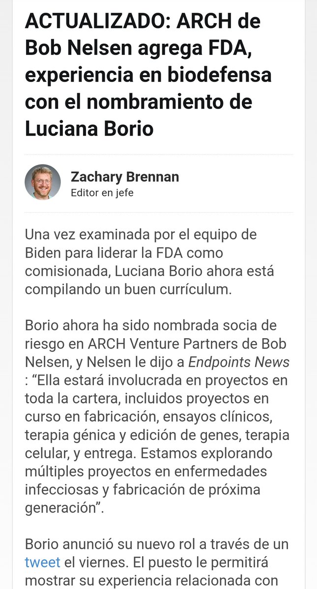 La idea de fundar Resilience partió de Luciana Borio, ahora comisionada de la FDA por impulso de Biden😏 y Nelsen