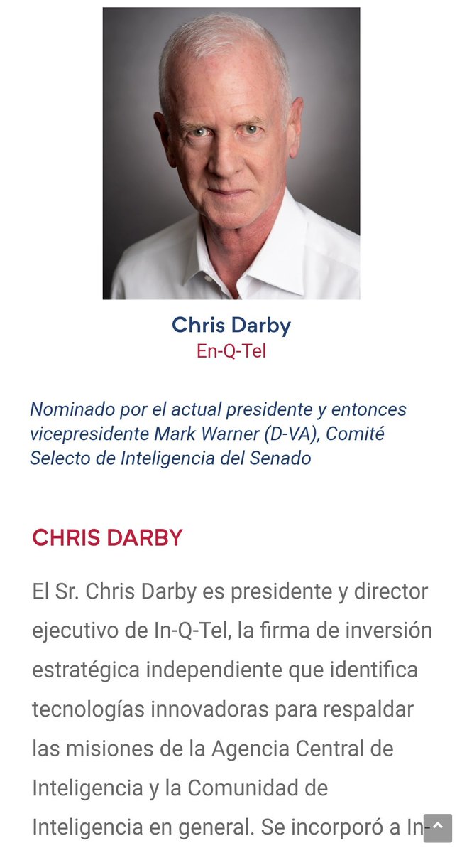 También forma parte de la direccion de Resilence Chris Darby, quien también forma parte de In-Q-Tel y está involucrado en varios departamentos de la CIA además de la comisión sobre IA de la imagen adjunta (presidida por Eric Emerson Schmidt, exdirector de google 3 lustros)