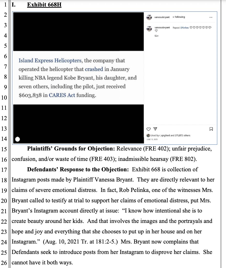 LA County's lawyers at @MillerBarondess also want to ask Vanessa about this Instagram post about the helicopter company and the fact that she's never posted anything about the crash photos or the conduct "alleged" in the lawsuit.