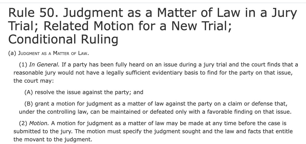 In federal civil trials, they're brought under Rule 50 in the Federal Rules of Civil Procedure. In federal criminal trial, they're brought under Rule 29 in the Federal Rules of Criminal Procedure. law.cornell.edu/rules/frcp/rul…