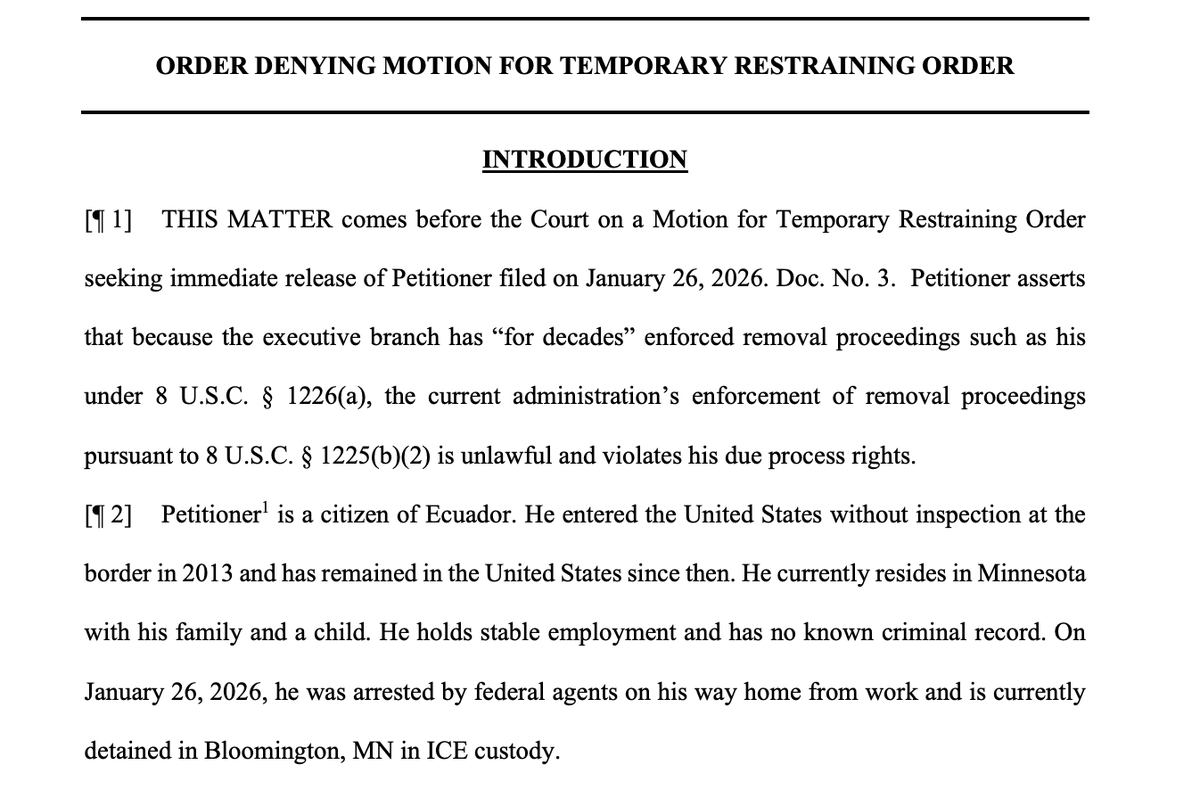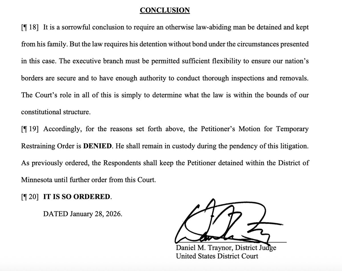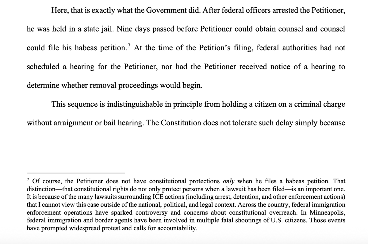 Notably, Tryanor -- a North Dakota-based Trump appointee -- is apparently handling cases in Minnesota due to the immense backlog of habeas petitions.