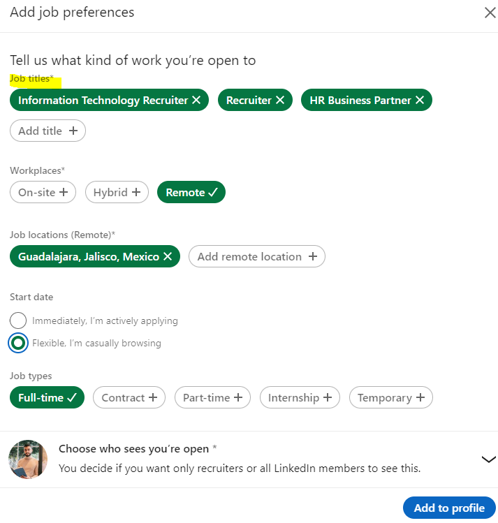 Sabían que en #LinkedIn puedes poner el # Open-to-work y elegir que solo los reclutadores fuera de tu compañía lo puedan ver?