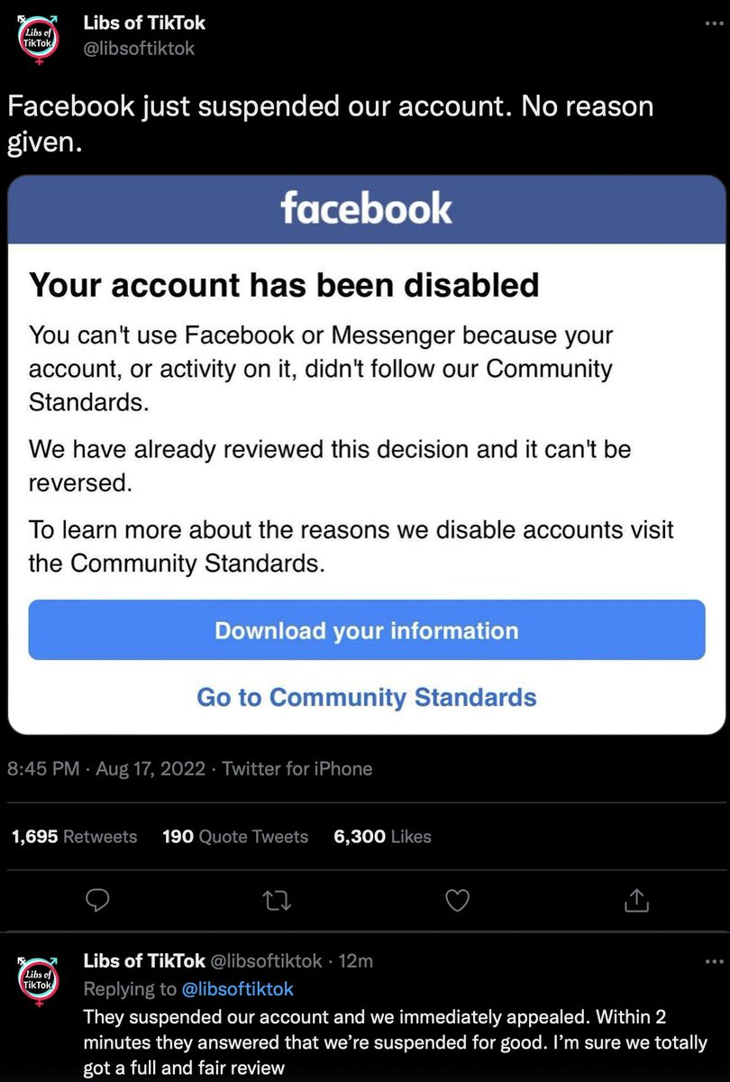 @Shopify, your platform is helping finance Libs Of TikTok, who is leading a campaign of violent threats to childrens hospitals, just banned on Facebook.