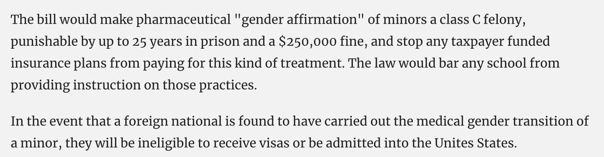 - Give 25 year prison sentences for gender affirming care to trans teens