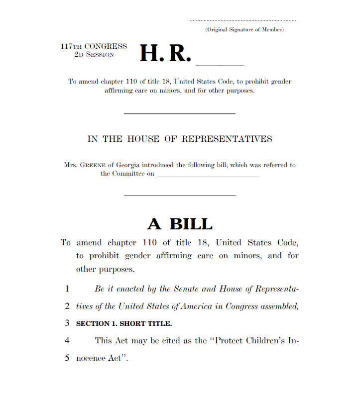 Marjorie Taylor Green releases bill to medically detransition all trans teens. It also targets trans adults: