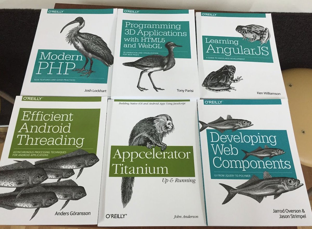 Hay excepciones y colecciones especiales que se escaparon. Pero no se los reconoce tan fácilmente como de O'Reilly, como la colección Head First, algunos dedicados a temas menos técnicos, una colección especial de Kyle Simpson o libros muy pequeños (yo escribí uno de éstos) 👇