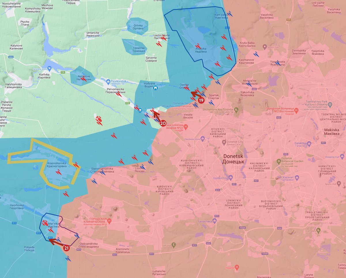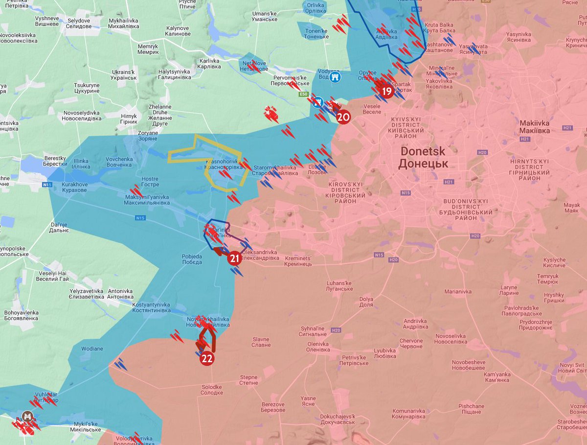 Russians are still trying to capture Pisky (20). A Ukrainian claims that Ukraine controls the town “situationally” and “conditionally.” I am under the impression that Ukrainian officers believe they could retake Pisky if given the necessary resources (heavy weapons).