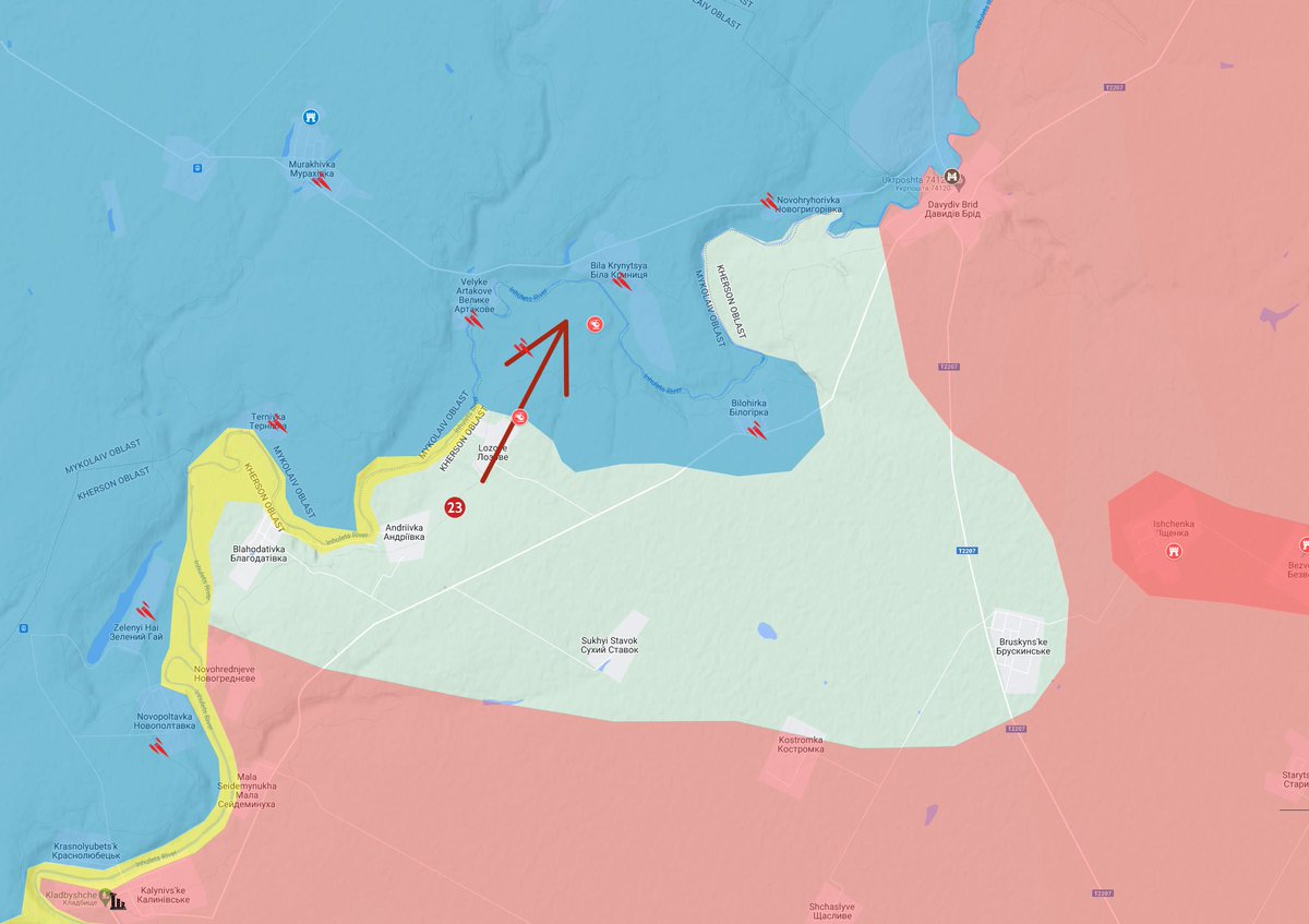 In the Kherson/Mykolaiv area, Russia attacked in the direction of Bila Krynytsya from Lozove (23), which means Ukraine almost certainly lost Andriivka and Lozove. There is ongoing fighting. Russia has expended great resources crushing the Ukrainian bridgehead across the Inhulets.