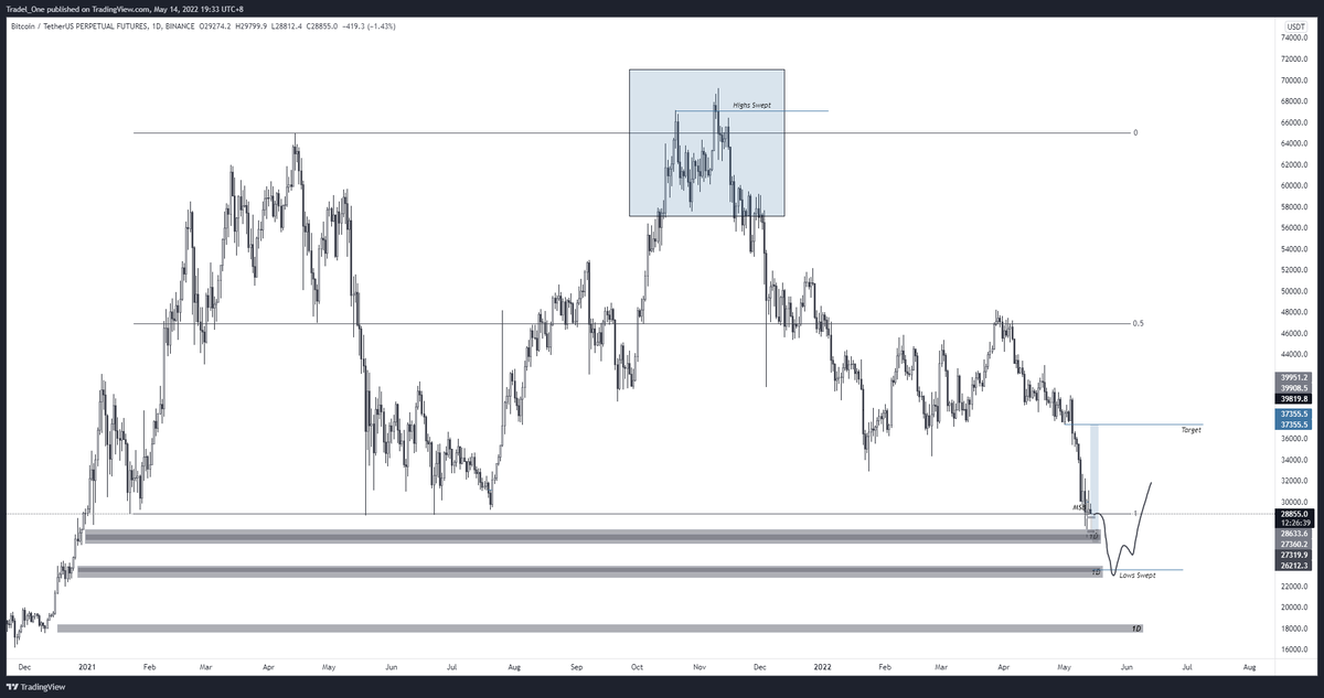 Overall though, and idea is that we see this recent low swept for a run back into the range - similar but opposite to what is shown in the box in the image below at prev ATH