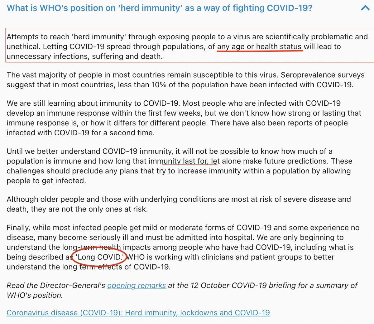 10. L'OMS a par ailleurs rappelé que l'infection de masse n'a jamais été, dans l'histoire de la santé publique, une stratégie de lutte contre les pandémies.