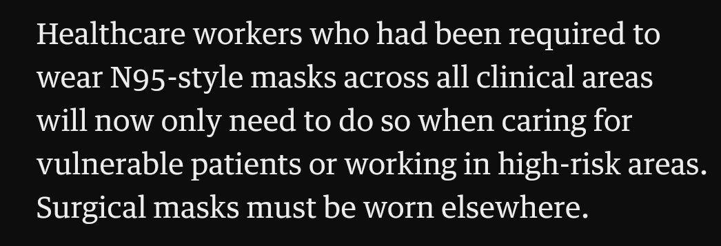 This is so incredibly obvious and basic that I have to pinch myself every day when I realise that, not only are they not pursuing this target, they actively institute measures to make the situation worse, such as reducing to surgical masks, as has just happened in WA.