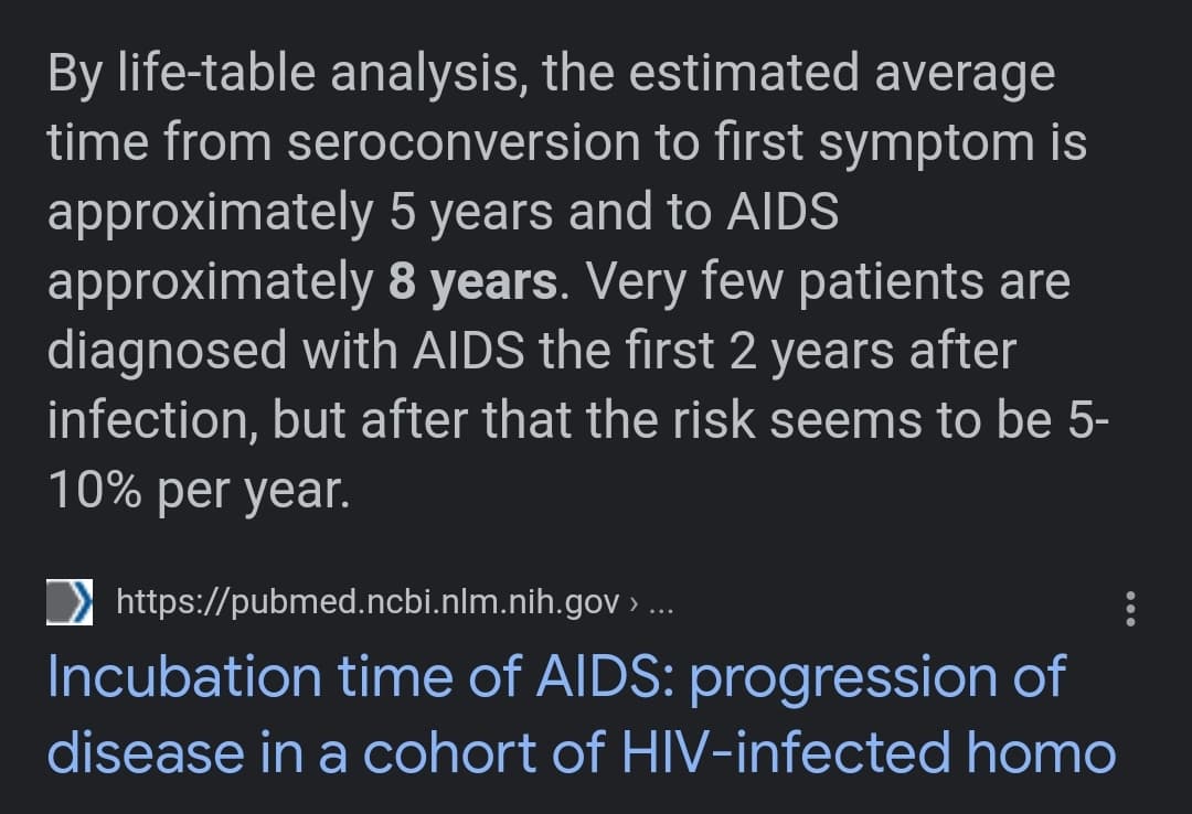 3/ What we would not appreciate, however, is that the first symptoms of immunodeficiency do not appear on average until FIVE YEARS after that initial mild illness and the full horror of the AIDS illness until EIGHT YEARS after.