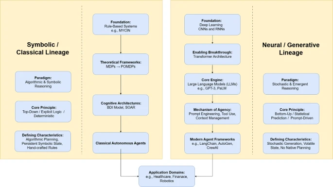 The survey argues that Agentic AI research must be categorized to avoid conceptual retrofitting (applying old symbolic models to new systems).