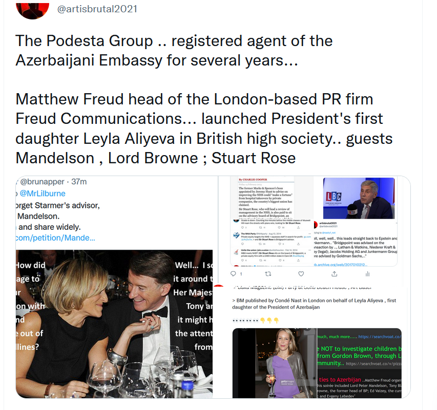 Matthew Freud launched Leyla Aliyeva in British high society.. guests Mandelson , Lord Browne ; Stuart Rose