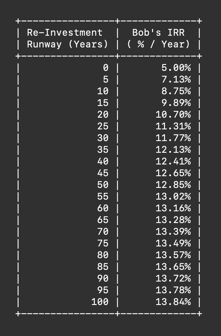 Let's say Bob has a 5-year "Re-investment Runway".