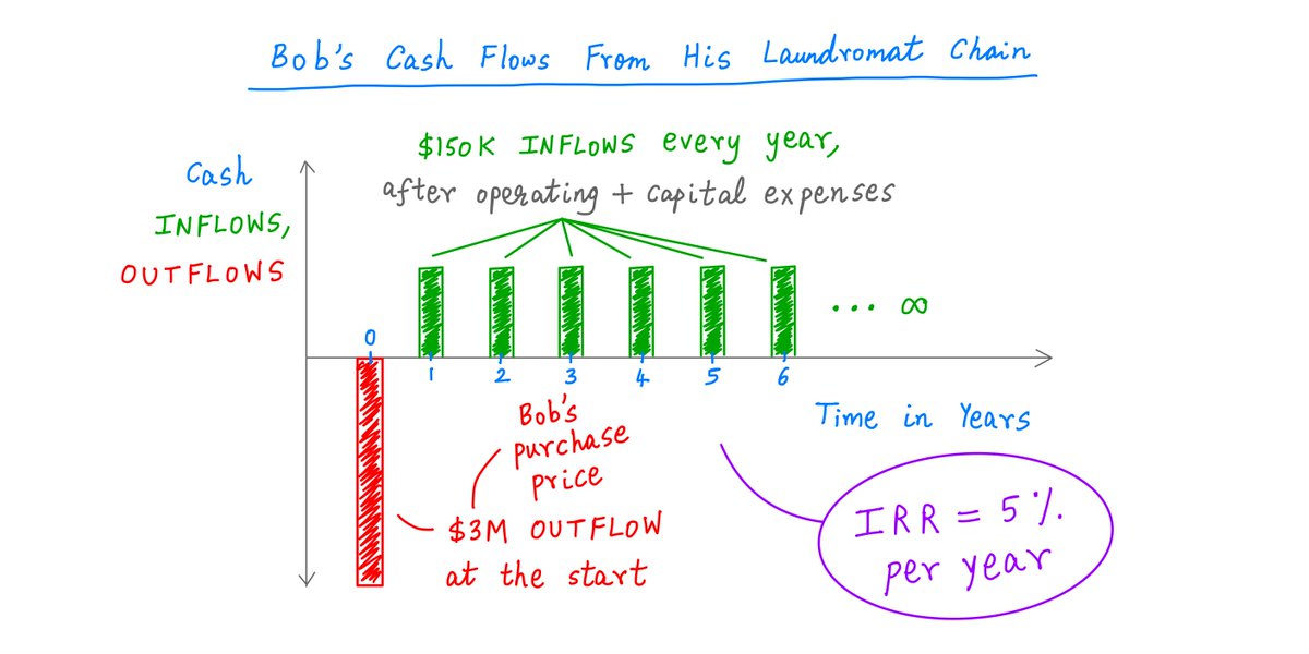 After covering BOTH operating and capital expenses, let's say Alice is able to TAKE OUT $150K per year from her laundromat chain.