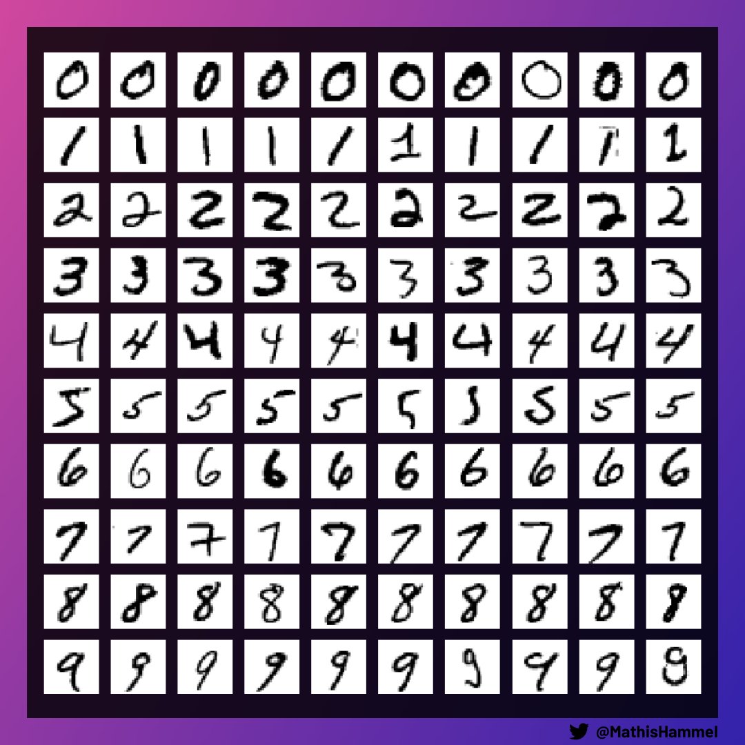 D'habitude, pour apprendre une tâche spécifique, le réseau de neurones a besoin du dataset correspondant. Par exemple pour la reconnaissance de chiffres manuscrits, on peut utiliser le dataset MNIST qui contient 60.000 images d'entraînement :