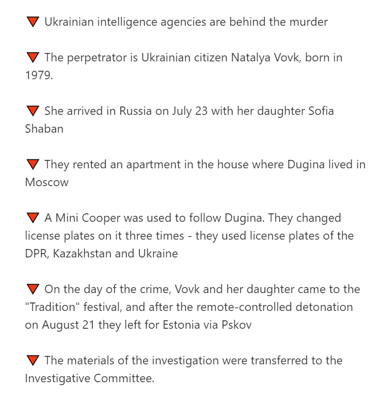 FSB claims they've solved the assassination of Darya Dugina, here's what they're saying: Image