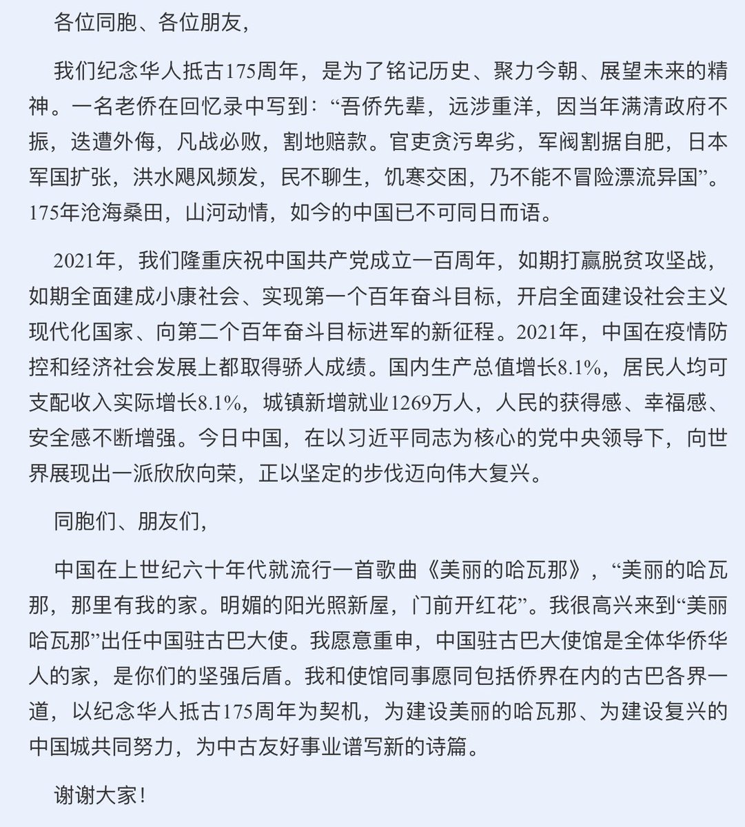 Discurso del Embajador Ma Hui en la Ceremonia de Apertura del Curso Escolar 2021-2022 y del Lanzamiento de la Enseñanza de Chino en la Escuela Secundaria Fructuoso Rodríguez :Ante todo, aprovecho para felicitar al hermano pueblo cubano por controlar la pandemia,
