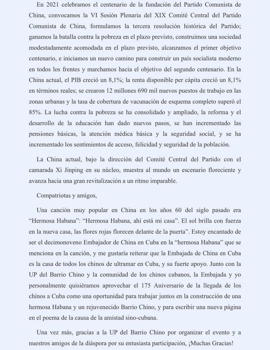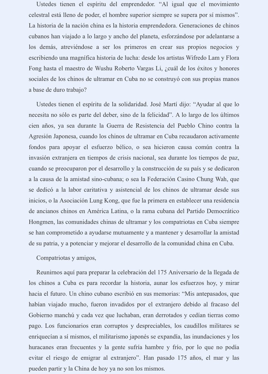 2/4 En la Casa de Artes y Tradiciones Chinas, Emb. Ma Hui se reunió colectivamente con representantes de la comunidad china y pronunció un discurso enfocado en celebrar el 175 aniversario de la llegada de los chinos a Cuba.