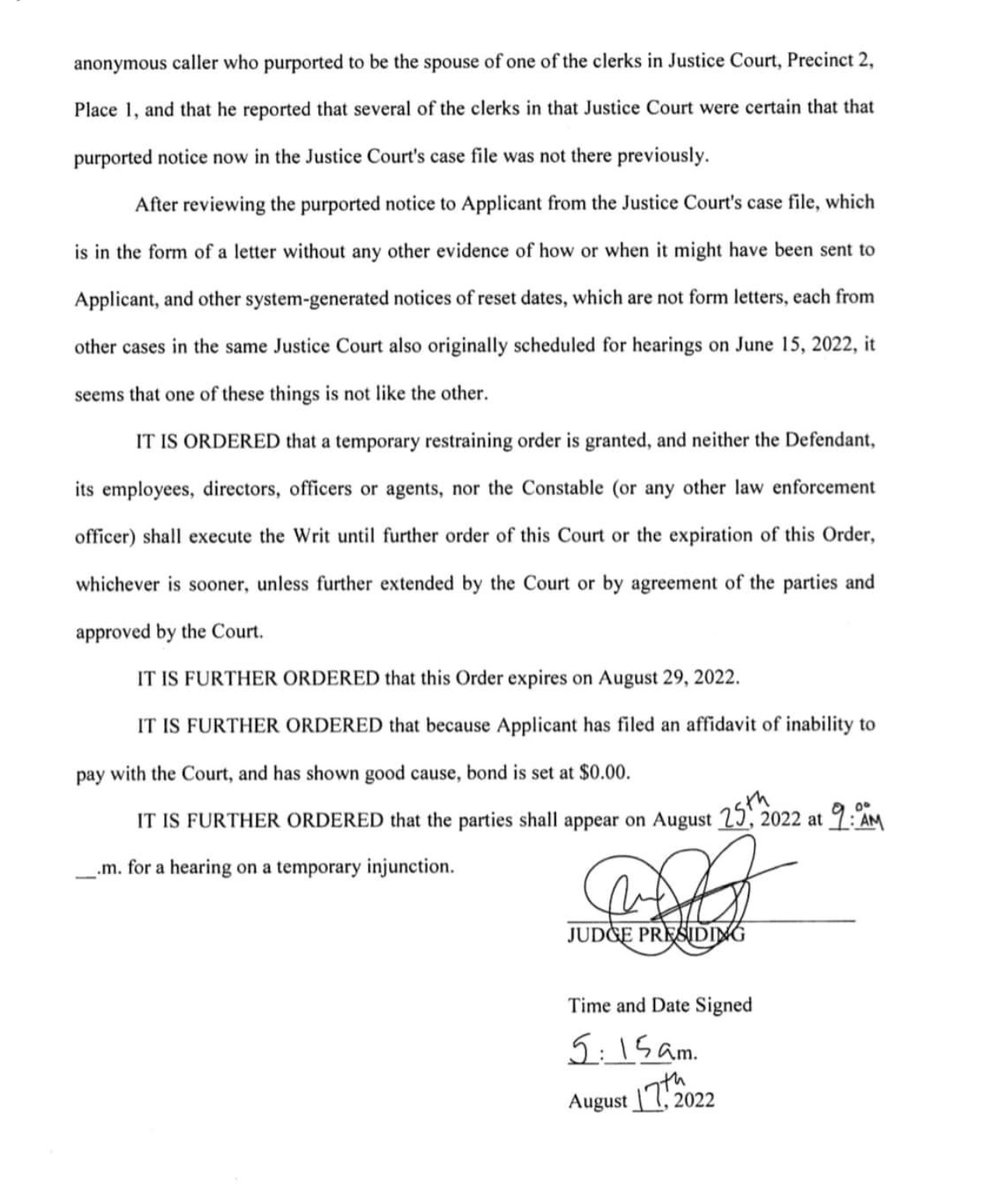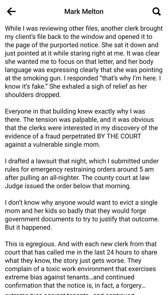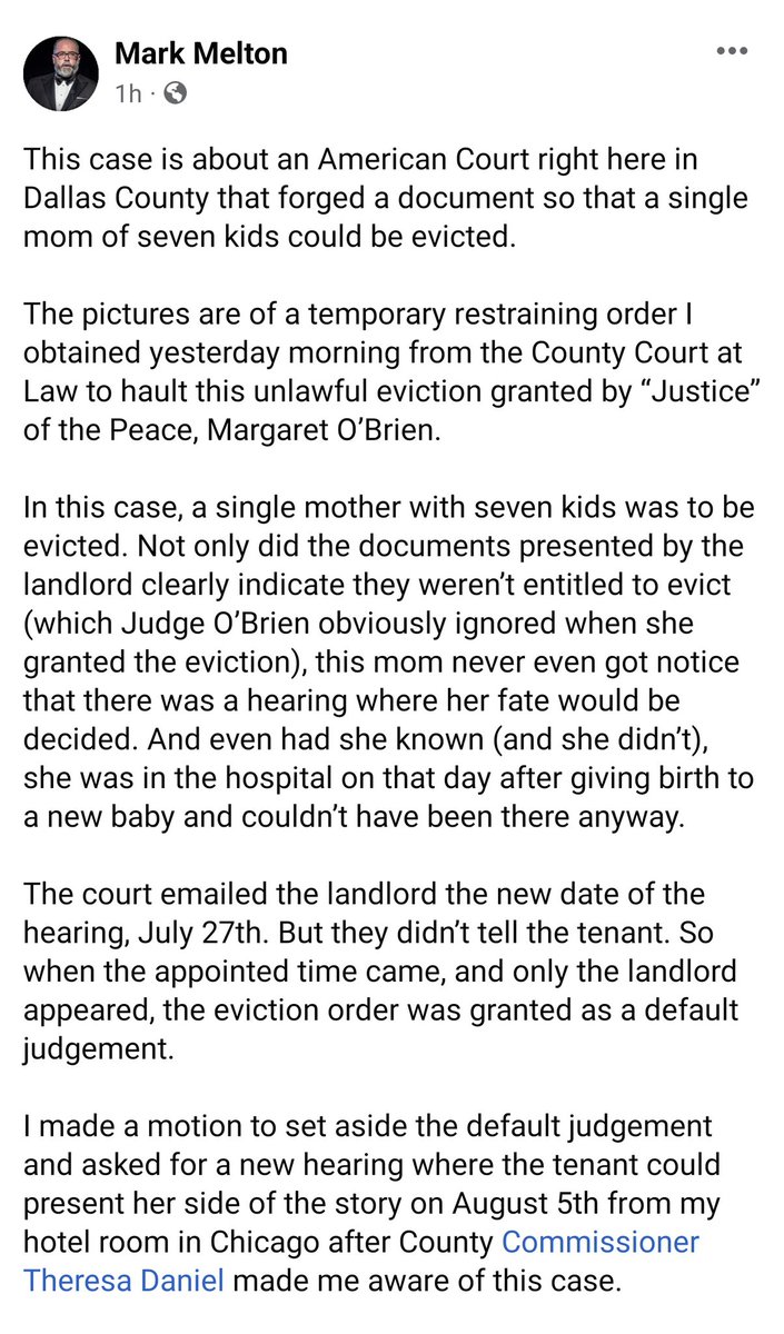 NEW: Wild situation coming out of Dallas. High profile anti-eviction attorney @markmelton99 is accusing a County Couet Justice of the Peace's office of forging a document to fast track an eviction against one of his clients.