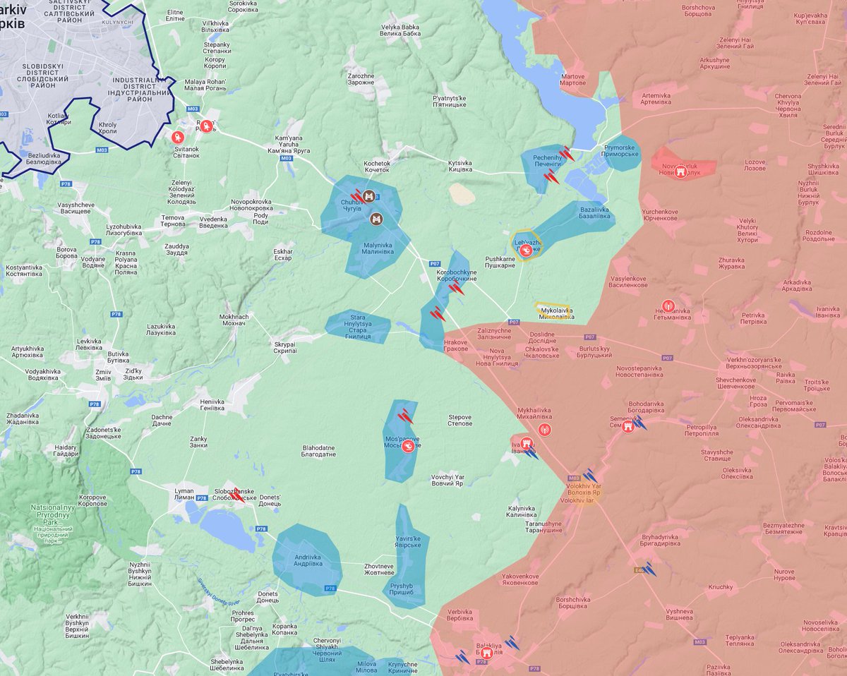 Generally speaking, Russia is performing recon-in-force throughout the Kharkiv area to find weaknesses in the Ukrainian defenses, but Russians are suffering high casualties in these actions.