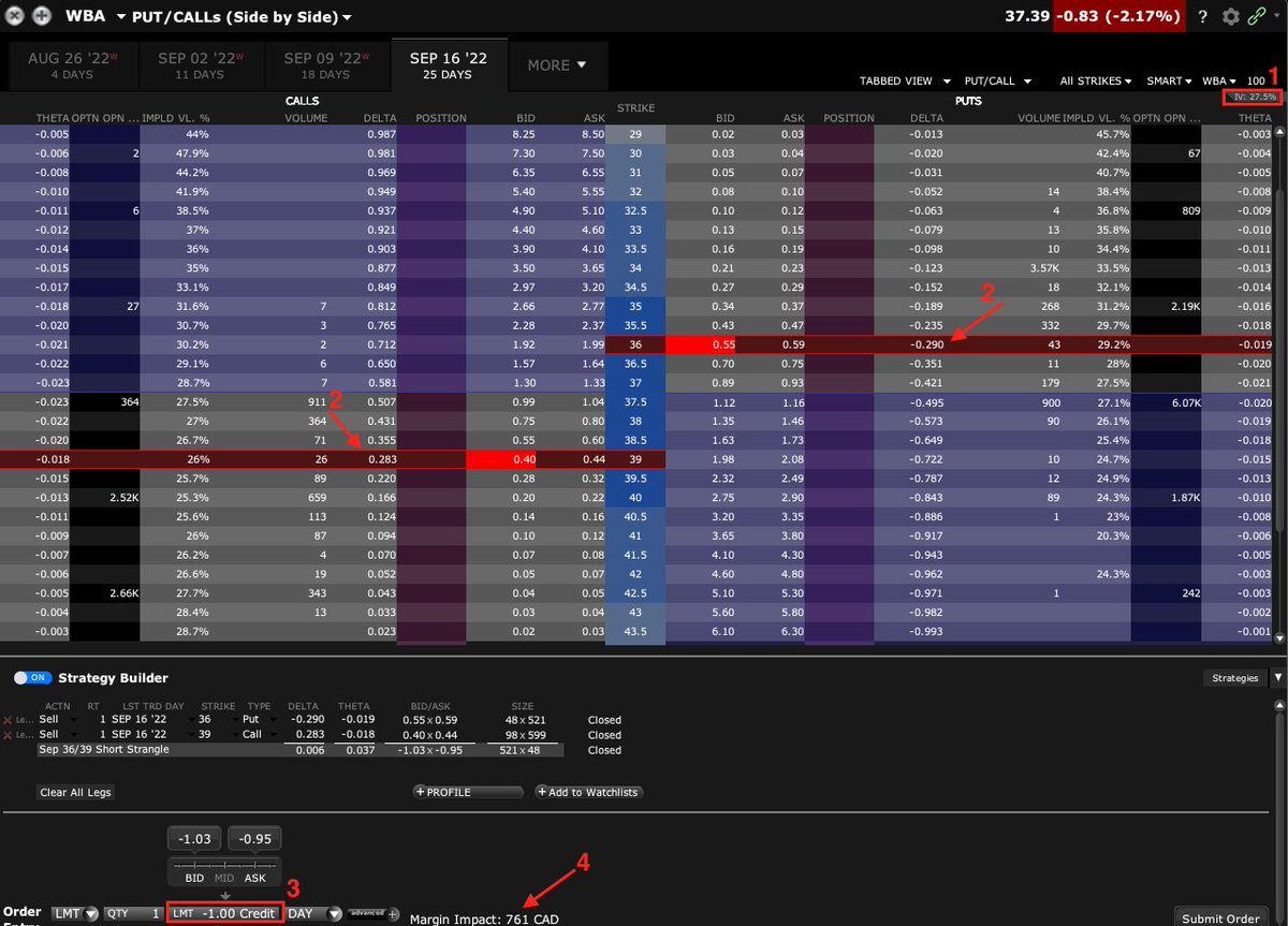 -2-3: ~29 Delta Short Strangle is going for $4.37 credit
