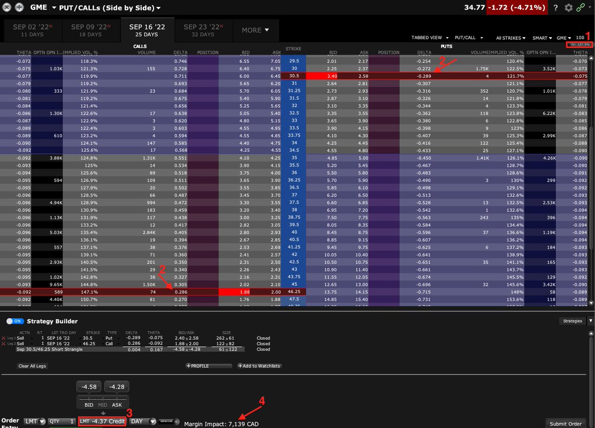 6- Since $GME is much more volatile than $WBA, its options will be priced more expensively. Now look at the margin requirements. $GME is almost 10 times more than $WBA! Simply because it’s more volatile which means more risk.