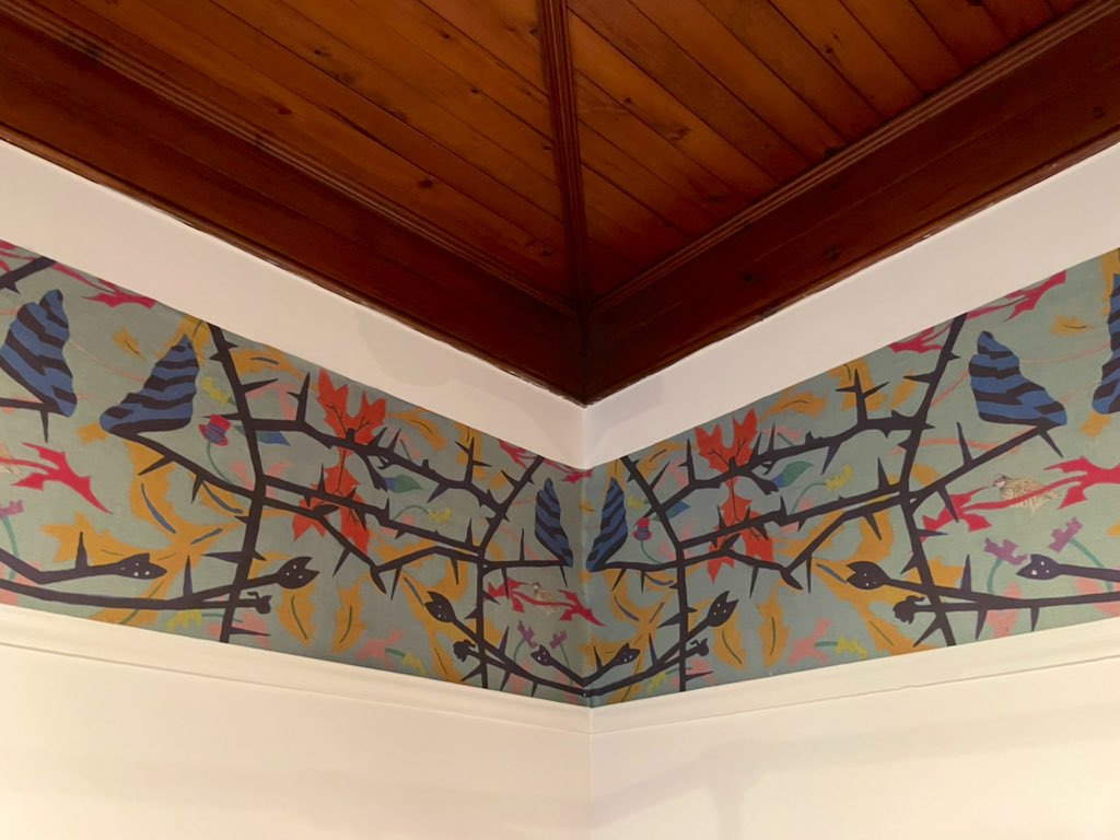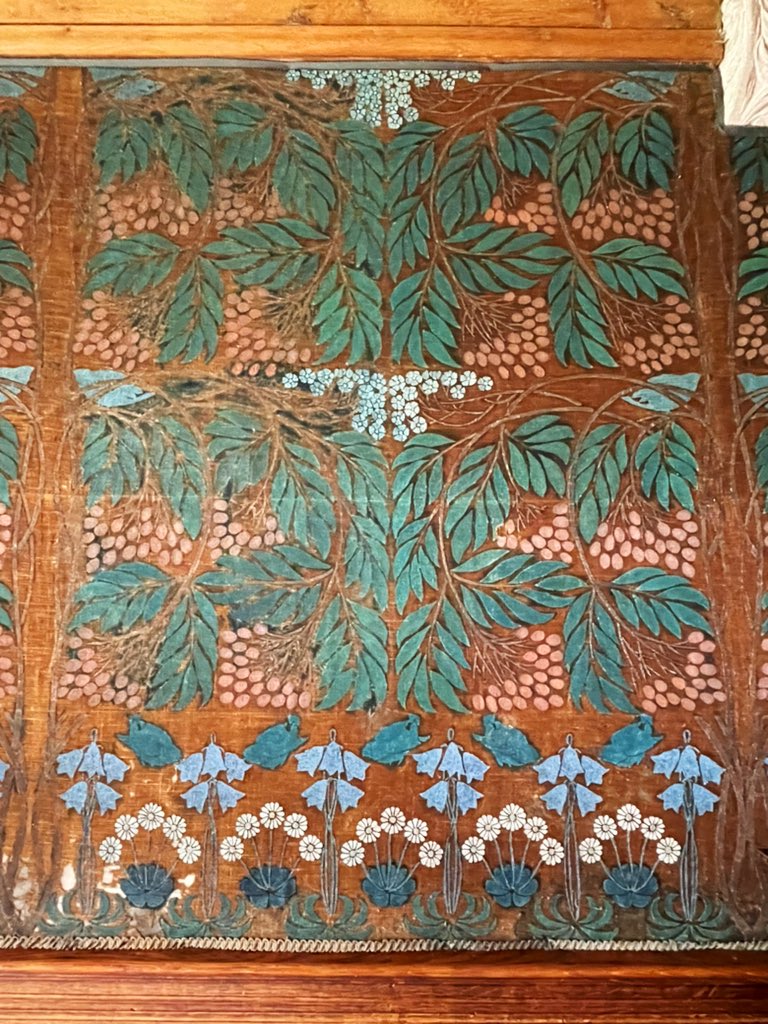 You can see the mulberries here & some daisies (also found in the dining room wallpaper). It is thought the daisies are a tribute to William Morris as they were used in his first design.