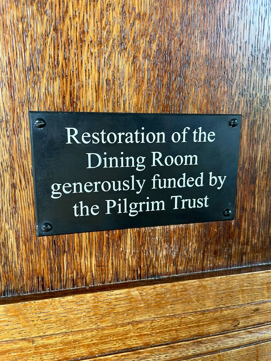 On into the dining room - wonderful to see that the @ThePilgrimTrust funded the restoration of this important room. The hessian based wall covering would have likely been a dark blue, but what remains is the conserved original.