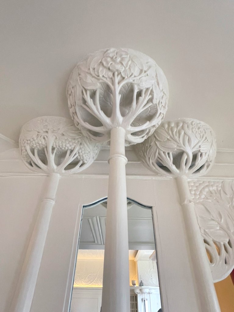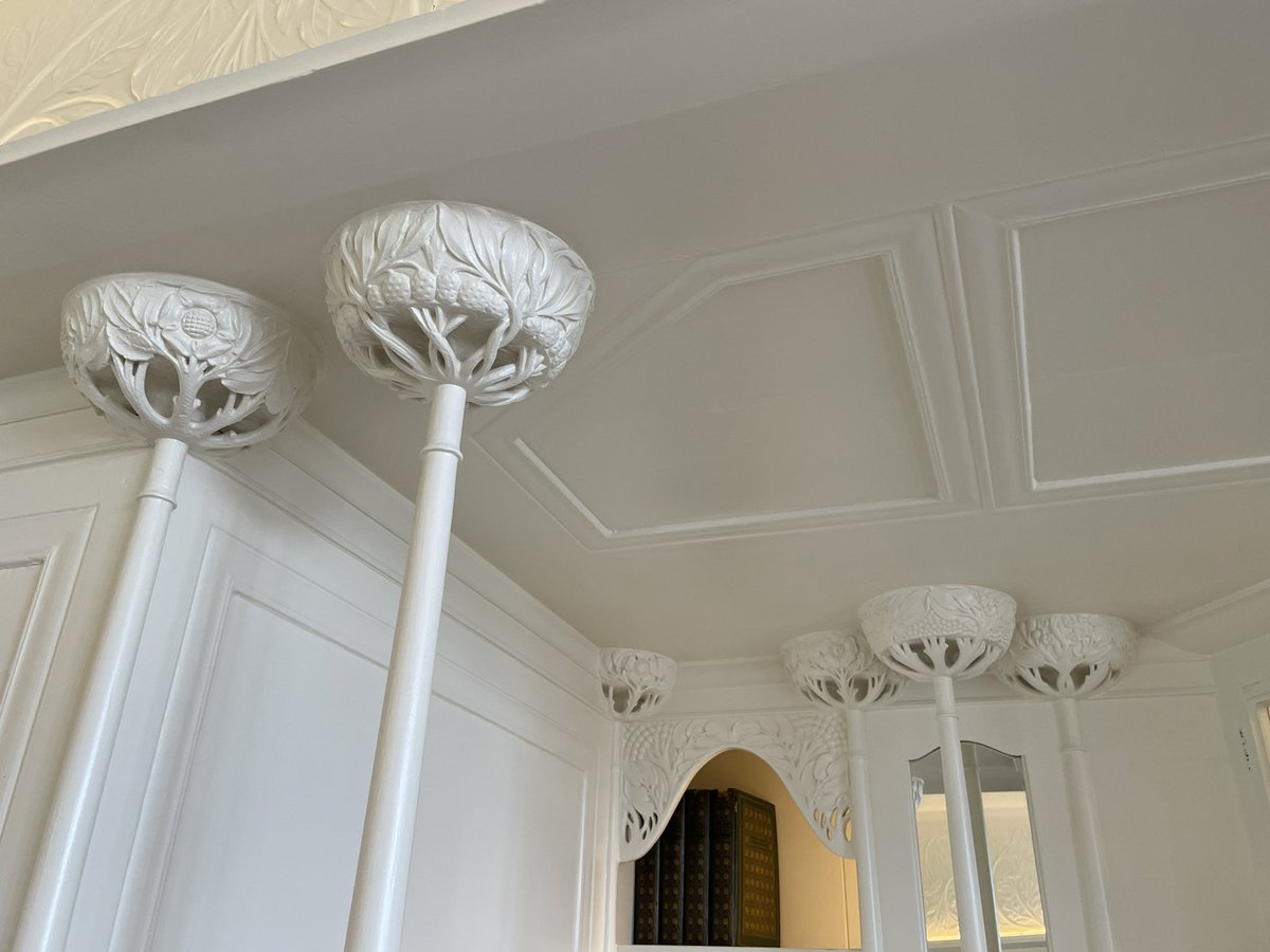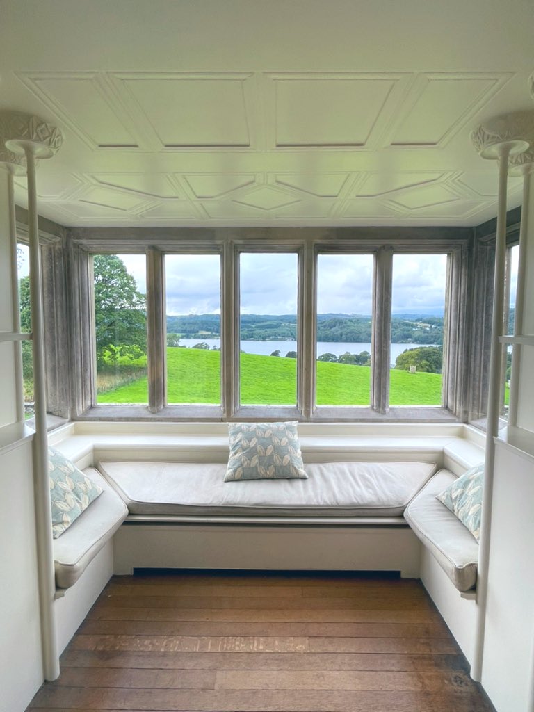The white drawing room - one of the most beautiful rooms I’ve ever seen. Views down to Windermere. According to our guide this room starts to show art nouveau influences as well as arts & crafts with its swirling foliage.