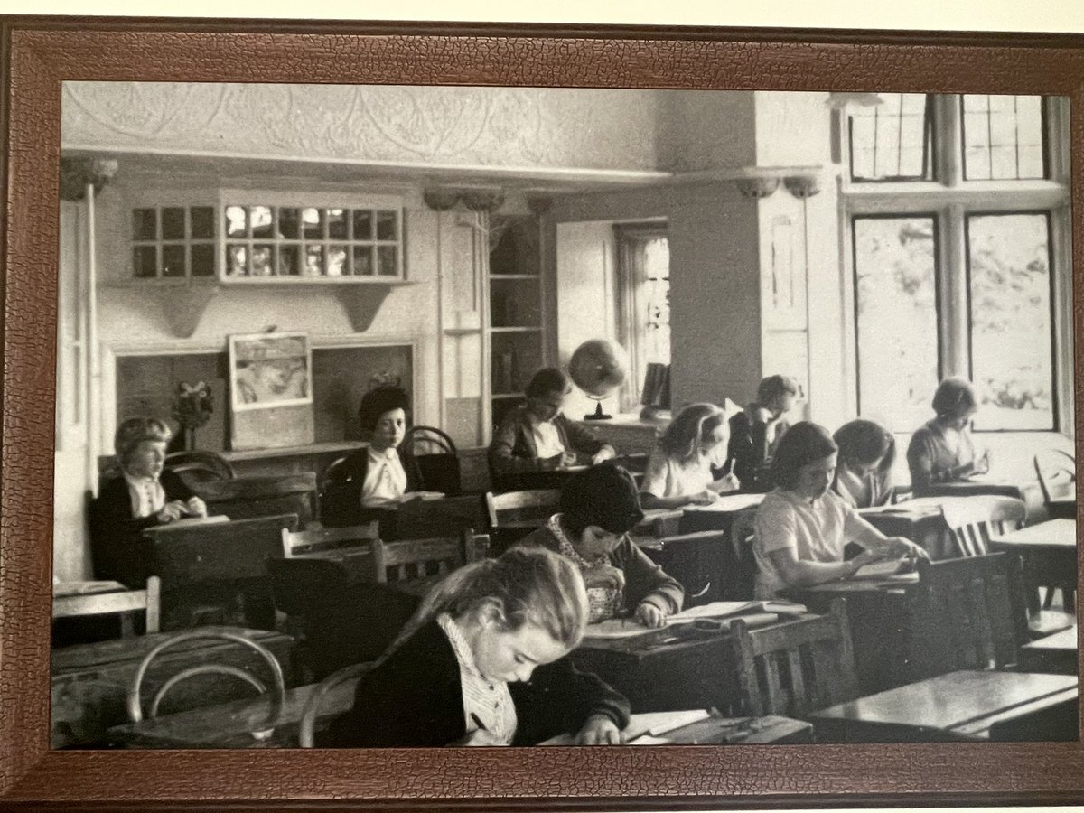 Upstairs @lakelandarts have included a number of orientation spaces covering the history of the house and the arts & crafts movement. Love these pictures of when the house was used as a school after the family no longer used it, until the 1960s.
